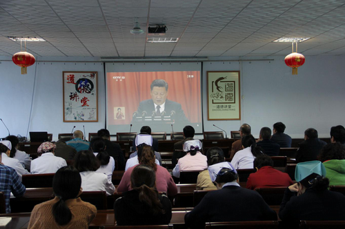 2017年10月18日上午9时,中国共产党第十九次全国代表大会开幕会在北京人民大会堂隆重召开。二附院全体党员干部职工齐聚门诊四楼会议室,共同观看这一盛大的开幕会,并聆听习近平总书记代表十八届中央委员会向大会所作的重要报告。