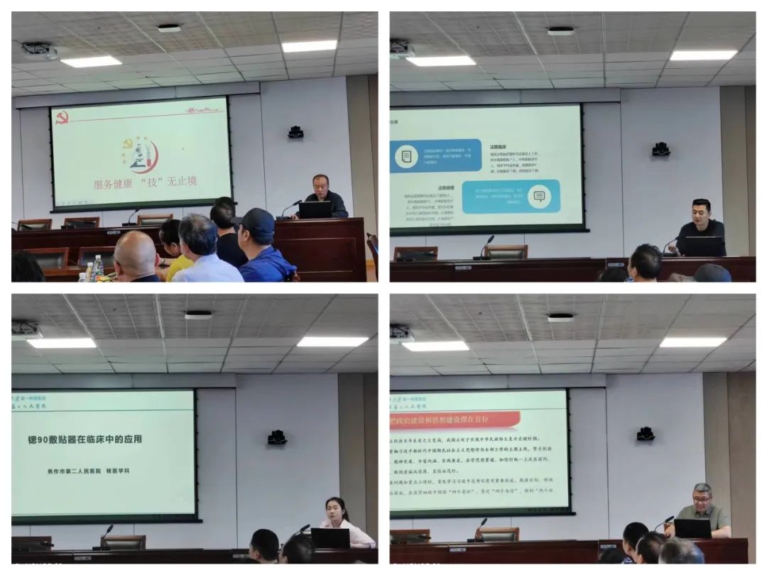 随后,一附院医技党支部核医学科包帆为大家分享了放射核素治疗相关的科普知识,外一党支部书记普外二区乔超锋主任分享了腔镜发展历史,我院司法鉴定所党支部书记李广申从医疗事故案例中提炼出临床医生在诊疗过程中应特别注意的要点与大家分享。