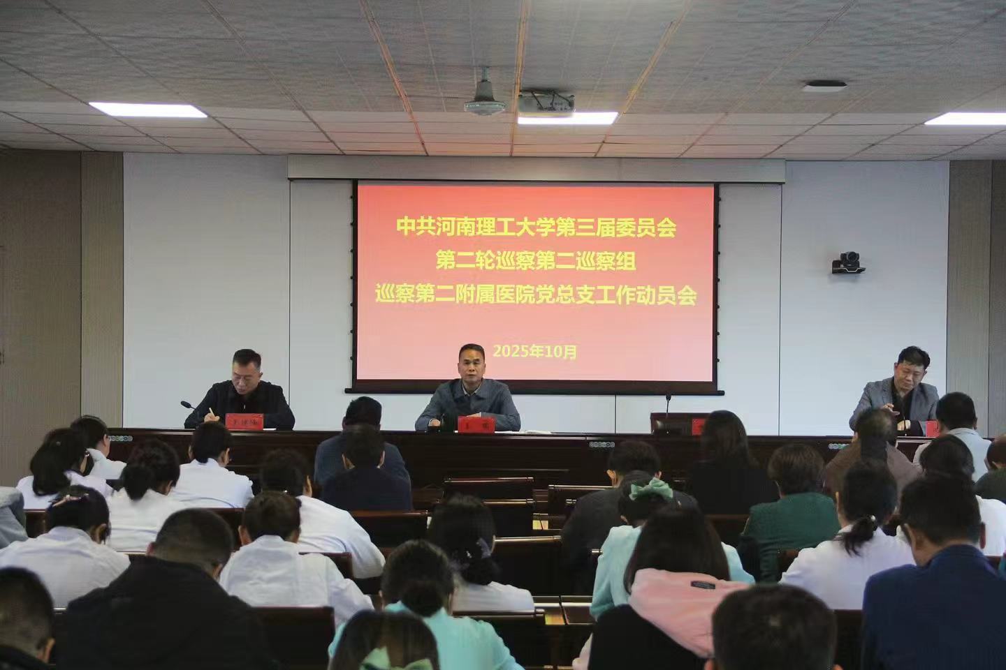 10月13日下午,三届党委第二轮巡察第二巡察组巡察第二附属医院党总支工作动员部署会在二附院门诊楼四楼会议室召开。第二巡察组组长王瑞、二附院党总支书记王建峰、院长田小应、二附院全体中层干部以及巡察组全体工作人员参加会议。会议由二附院院长田小应主持。