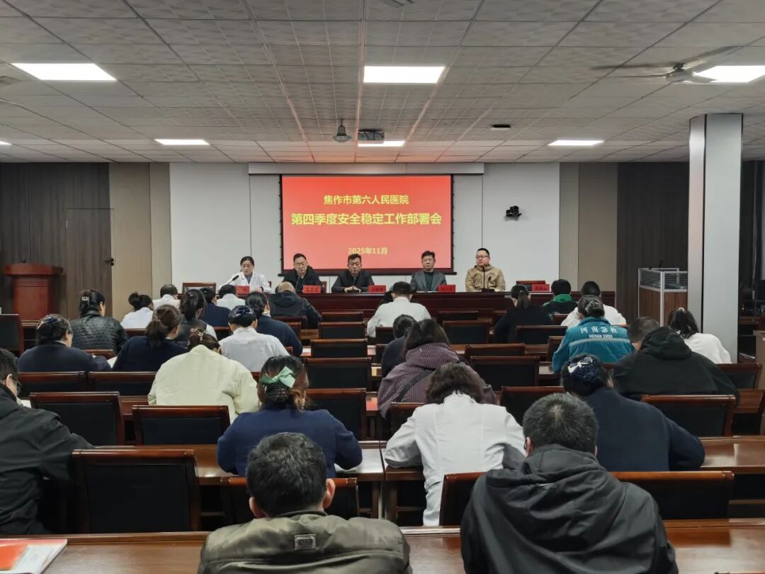 为深入贯彻习近平总书记关于安全生产的重要指示精神,切实防范化解安全风险,保障医患生命财产安全与医院平稳运行,近日,我院组织召开第四季度安全稳定工作部署会。院领导班子、各科室负责人及关键岗位人员参加会议。